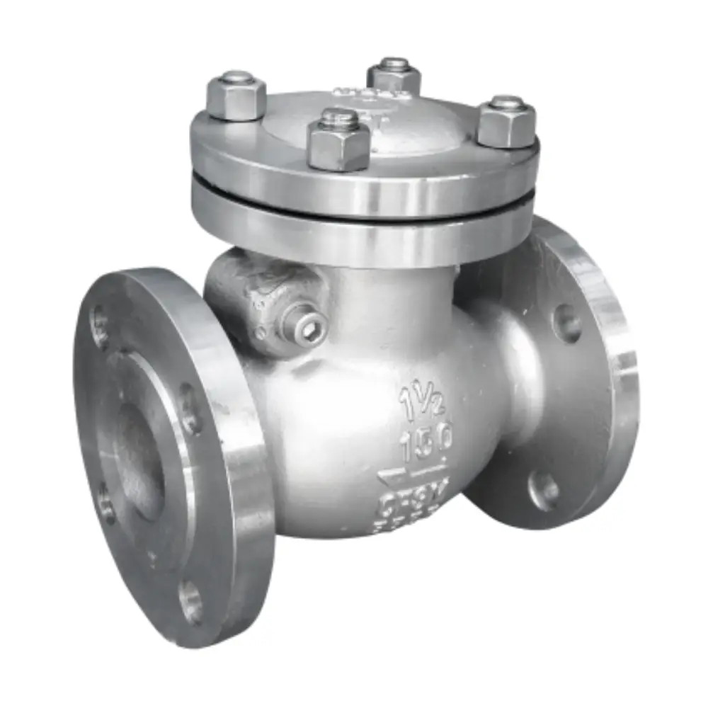 Swing check valves use a hinged disc to prevent reverse flow. They are suitable for systems with steady flow and low pressure drop requirements.